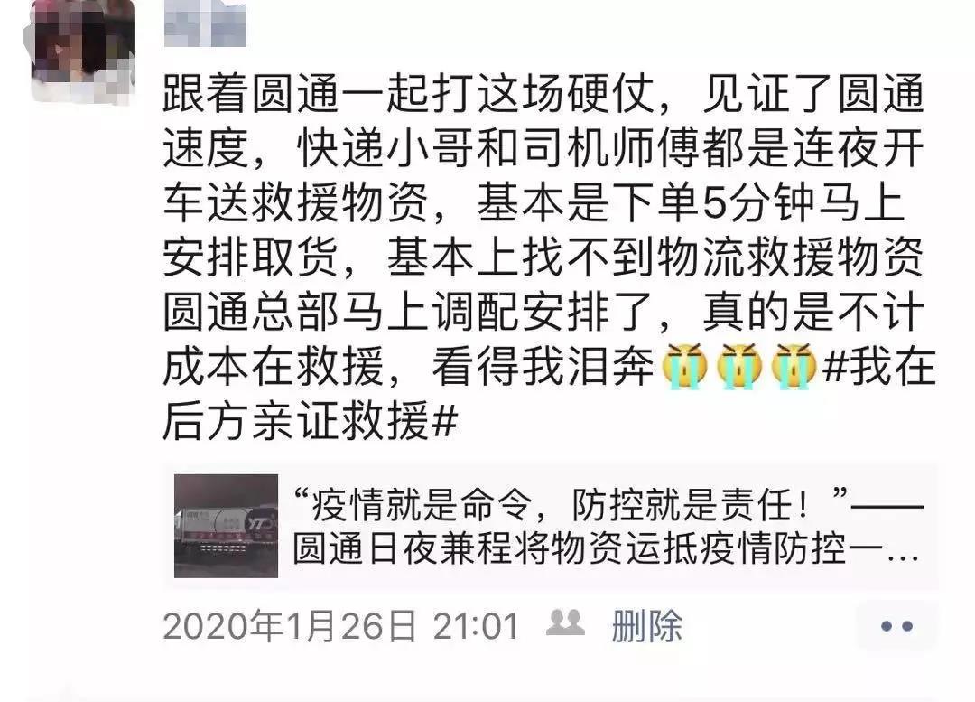 圓通這條綠色通道,接通了許多愛心觸達戰"疫"一線的路,更是讓越來越多人意識到“快遞鐵軍”的責任擔當。