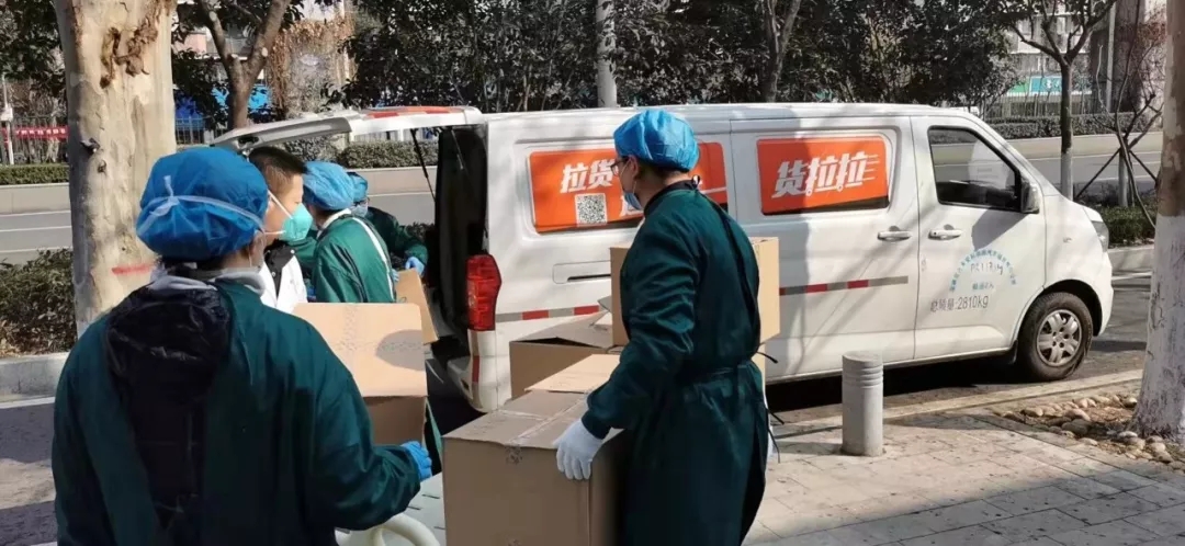2月4日,貨拉拉支援疫區綠色通道新承接9批次運輸需求。貨拉拉武漢支援小組協助武漢市青少年發展基金會,向東湖高新區管委會送達了55箱消毒液等物資。
