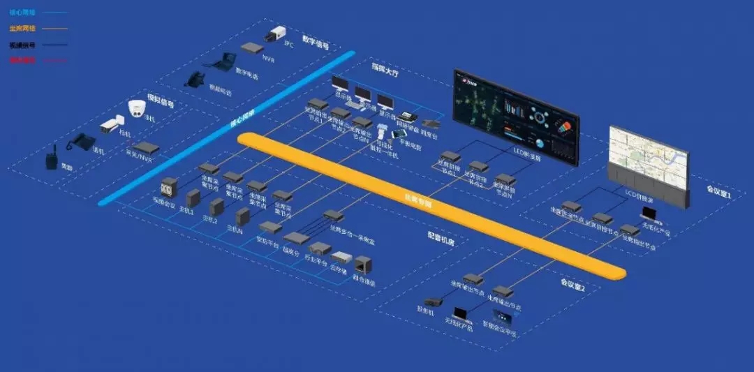 大華股份新一代指揮中心解決方案整合了可視化管理、KVM坐席管控、小間距LED大屏/LCD液晶拼接屏系統、指揮調度能力、視頻會商平臺等眾多業務應用,打破了各個子系統間的壁壘,串聯起互相獨立的數據資源,形成一套統一管控、綜合分析、多維度研判的集中化顯控系統,旨在建設一個高效、快速的指揮中心,讓現場管控更便捷、信息傳遞更完整、指令下達更快速、任務執行更高效。