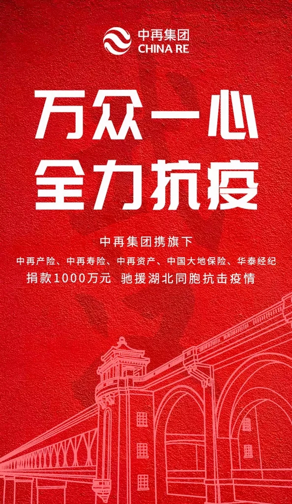 1月28日,中再集團系統(tǒng)向湖北省慈善總會捐款人民幣1000萬元,積極助力湖北抗擊新型冠狀病毒感染肺炎疫情、共渡難關。