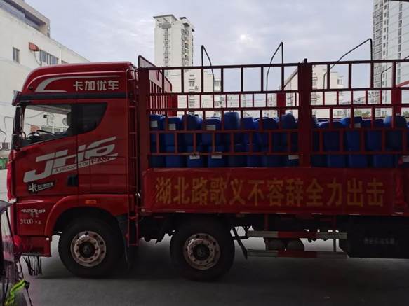 運輸車輛就近從速調配,于昨日下午裝車向疫區出發,并于今日上午與漢川市新冠肺炎防控指揮部安全交接。