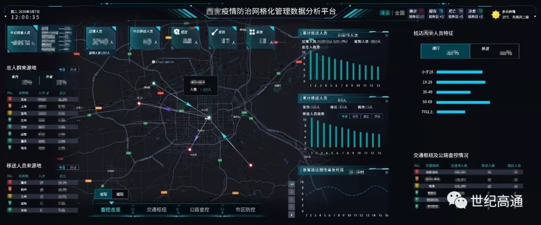在這場嚴峻的疫情防控阻擊戰中,大數據及人工智能等技術手段為疫情防控工作提供了有力的信息化支撐。世紀高通將充分發揮企業技術優勢,與全國人民一起,齊心協力,共克時艱,共同打贏這場沒有硝煙的戰役!
