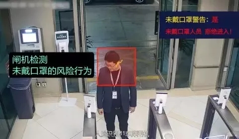 在園區出入口,借助華為云AI技術可實時監測人員是否佩戴口罩,并和門禁系統聯動,禁止未佩戴口罩人員進入園區,同時第一時間上報相關負責人并上傳到園區智能運營中心,確保潛在風險無法進入園區。