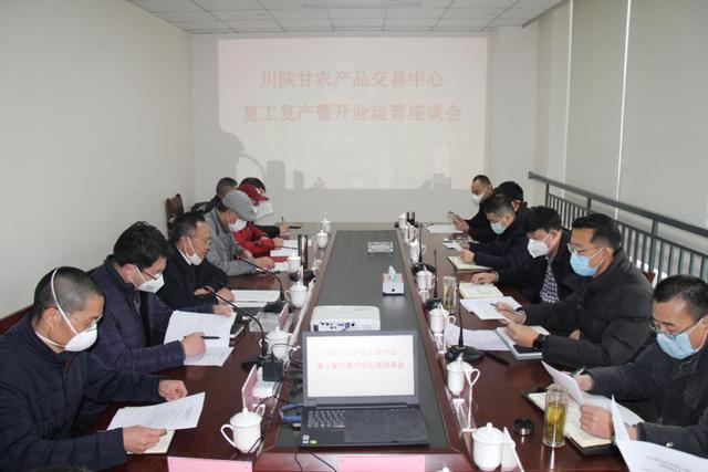 2020年2月20日,廣元市人民政府副市長彭洪率隊抵臨川陜甘農產品交易中心進行實地考察,調研川陜甘農產品交易中心的防疫工作和復工復產情況,并主持了川陜甘農產品交易中心復工復產暨開業運營座談會。廣元市人民政府副秘書長張健,市商務局、市國資委、市住建局、市農業農村局、廣元經開區管委會等相關領導陪同。四川北新大弘集團董事局主席劉邦成、集團執行總裁向永生、集團副總裁彭復建等匯報了川陜甘農產品交易中心的復工復產情況,并出席了座談會。