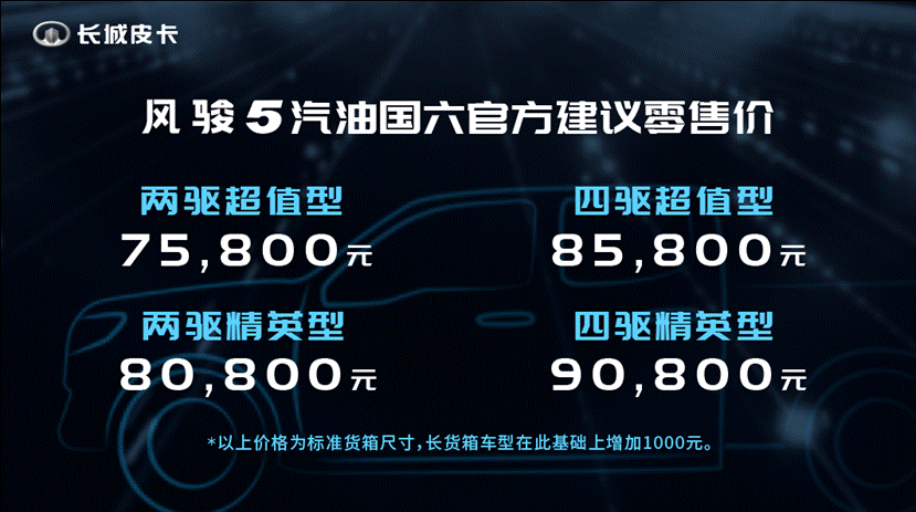 2月29日,長城皮卡風駿新品線上發布會舉辦,風駿5汽油國六和風駿7新冠軍版正式上市。其中,風駿5國六汽油版共有8款車型,包括兩驅/四驅以及標箱和長箱版車型,新車售價區間7.58—9.18萬元;風駿7新冠軍版共有3款車型,售價區間為11.88—13.28萬元。作為連續22年銷售第一、中國第一家同時擁有汽柴油國六車型的皮卡品牌,此次兩款新車將進一步豐富長城皮卡的“國六”陣營,為用戶提供更多選擇。