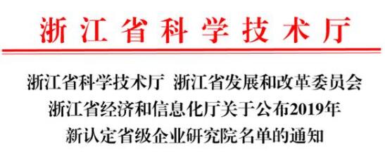 ▲浙江省科技廳發布2019年省級企業研究院名單