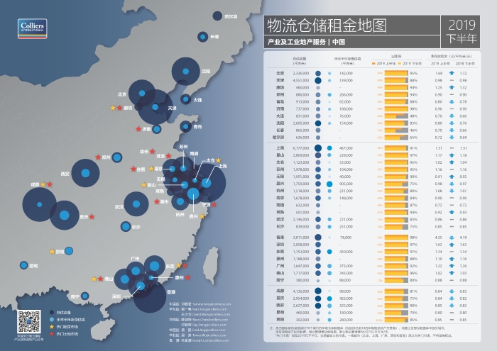 高力國際《2019下半年全國物流倉儲租金地圖》