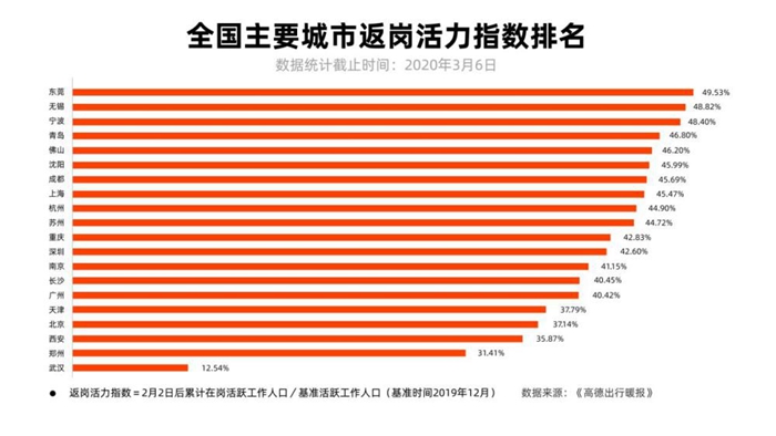 高德地圖交通大數據顯示,相比2019年同期,珠三角和長三角的駕車活力指數目前均已恢復到正常水平線之上。2月17日復工第三周以來,珠三角地區四個主要城市的駕車活力均在穩步提升。截至3月6日,珠海市的駕車活力指數為53.1%,已恢復平日5成以上;深圳、廣州、東莞的駕車活力指數已恢復平日6成以上,其中東莞市已超過珠三角地區的平均水平。