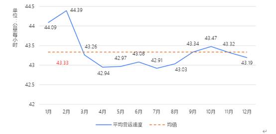 2019年各月份全國貨運車輛平均營運速度情況