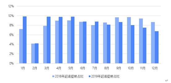 2018、2019年月度超速提醒次數對比