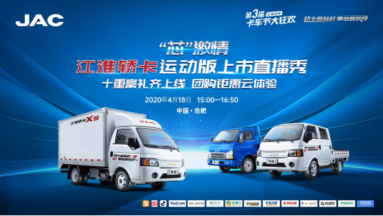 “芯”體驗,“芯”價值,“芯”未來,江淮轎卡運動版上市直播秀即將拉開序幕,4月18日15點,我們不見不散。