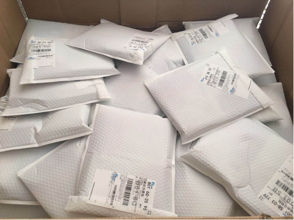 天天快遞員正在貼單包裝完的產品