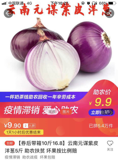 昆明天天快遞攜手蘇寧拼購生鮮商戶,利用物流、零售等全渠道優(yōu)勢,開啟了一場打開洋蔥銷路的緊急助農(nóng)行動。截至目前,已售出10萬斤。