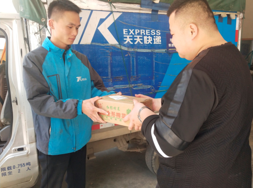 王贊看好的是蘇寧拼購的零售模式,2019年5月,“桃仁小哥”入駐拼購開店,銷量一路上漲。在拼購平臺的撮合下,去年8月份,負責臨安天天快遞的周永勝和“桃仁小哥”王贊,這對“自家人”相見恨晚,愉快地牽手合作。
