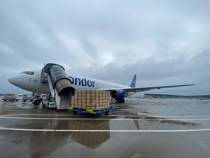 在這樣一個(gè)特殊時(shí)期,宏遠(yuǎn)控股自知使命,勇?lián)?zé)任,受德國駐華大使館委托,與德國神鷹航空緊密合作,開辟了石家莊至法蘭克福的洲際貨運(yùn)航線。5月8日,一架由北京宏遠(yuǎn)控股集團(tuán)運(yùn)營、德國神鷹航空執(zhí)飛的波音767-300ER航班順利開航。