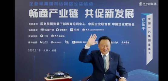5月12日,由國務院國資委干部教育培訓中心、中國企業聯合會、中國企業家協會主辦,以“暢通產業鏈 共促新發展”為主題的企業家高端對話活動在線上舉行。