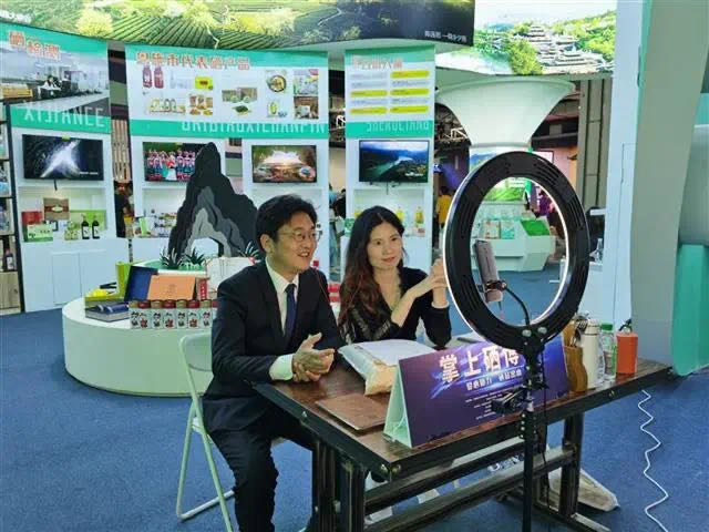 17日下午,大型網絡展銷活動“掌上硒博會——愛心助力,硒品出山”在恩施州文化中心硒博館開幕。琳瑯滿目的富硒產品,民族風情的直播女郎。疫情之后的展會少了人頭攢動,多的是網絡云端的見面和溝通。記者看到,恩施市副市長楊凱軍在展臺前賣力直播,數十位網紅姐姐也穿梭來往,推介恩施大山富硒產品。