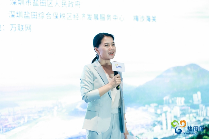 在振奮人心的《筑夢·藍灣鹽田》的鹽田區整體營商環境宣傳片后,深圳鹽田綜合保稅區經濟發展服務中心副主任黃勁綺、梅沙海關副關長陳冬冬分別就鹽田綜合保稅區產業發展、載體空間情況和鹽綜保海關監管政策、目前的監管措施例舉進行了細致講解,讓與會來賓及直播間觀眾對鹽田綜合保稅區有了更全面、更詳盡的認知。