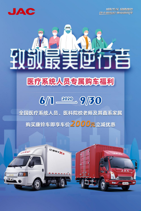 致敬最美逆行者 江淮康鈴推出醫療系統人員專屬購車福利