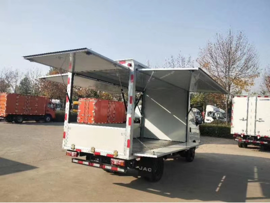 江淮轎卡售貨車的貨臺高度僅為0.748m,裝卸貨都更加方便。此外,貨箱四面均可開啟,對于商販而言,貨箱四面可開啟的功能大大提高了商品的曝光率。此外,江淮轎卡售貨車的轉彎半徑6.68m,保證了良好的機動性,商販們可以開著它穿街過巷,找到人流量最大的擺攤地點,為用戶創造更大價值。