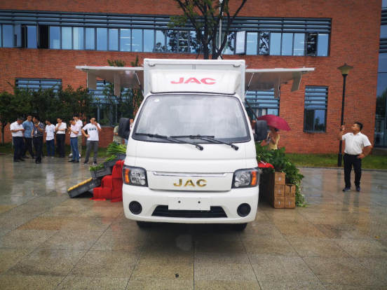 來自安徽某食品科技有限公司常總,通過朋友圈看到江淮轎卡售貨車的信息,也來到了直播間,現場感受了一把網紅流動售貨車的魅力,“從第一次接觸江淮轎卡售貨車至今,我就想到了農場的生鮮農產品、水果蔬菜、家禽、服裝鞋帽、花鳥魚蟲等等,這些東西都能擺上車,車子靈巧,我們走進社區也能輕松穿梭,實在是太方便了。”在了解了各方面情況后,常總當即決定訂購江淮轎卡售貨車。