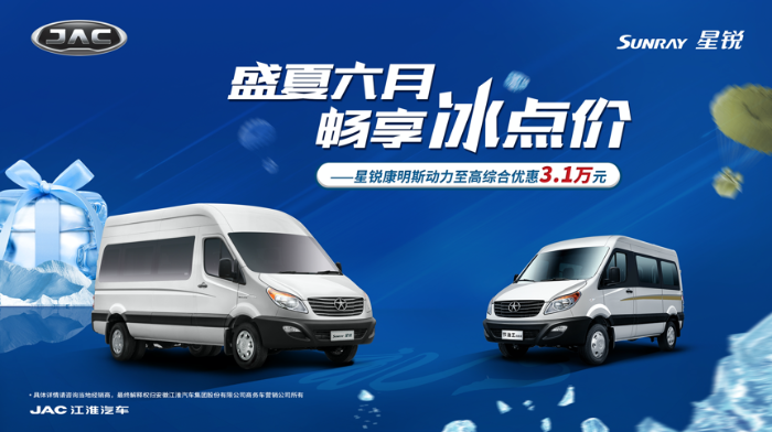讓利優(yōu)惠一波接一波!繼“可靠伙伴感恩季”的十重豪禮之后,6月1日起至6月30日,江淮星銳推出“盛夏六月,暢享冰點(diǎn)價(jià)”主題促銷(xiāo)活動(dòng),爆款車(chē)型星銳節(jié)油王國(guó)五產(chǎn)品最高綜合優(yōu)惠12000元,星銳5系高頂快運(yùn)版國(guó)五產(chǎn)品最高綜合優(yōu)惠31000元,以最最最實(shí)在的優(yōu)惠刺激市場(chǎng)消費(fèi)潛力,為消費(fèi)者提供更具性?xún)r(jià)比的選擇。