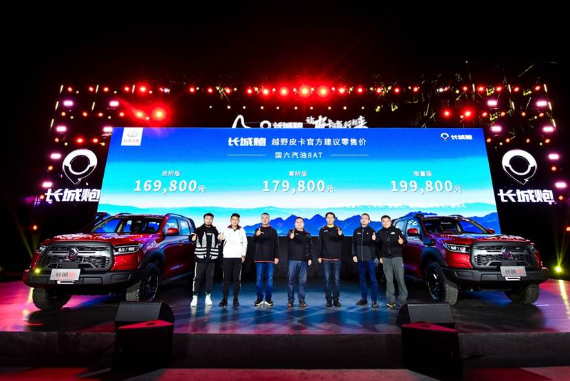 6月5日,長城炮越野皮卡正式上市,首期推出三款國六汽油8AT車型,其中四驅進階版16.98萬元,四驅高階版17.98萬元,四驅限量版19.98萬。柴油版車型將于7月上市。