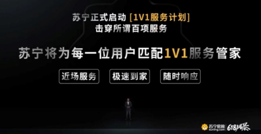 服務方面,蘇寧則啟動“1V1”服務計劃,為每?位用戶匹配1V1 服務管家,將服務力量調配到了最大值,依托于蘇寧物流的高效配送助力,家樂福、蘇寧小店等業態引領的極速到家服務更是成為最大亮點之一。