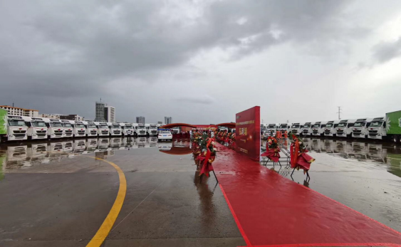 6月19日上午,廣西領鮮易達冷鏈供應鏈有限公司舉行冷鏈物流業務啟動暨中國重汽豪沃T7牽引車新車交接儀式,26臺嶄新的豪沃T7牽引車一字排開,氣勢恢宏。
