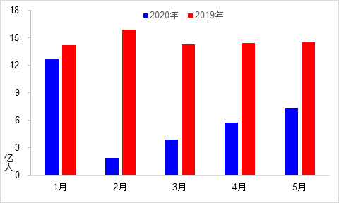 5月,完成營業(yè)性客運量7.4億人,恢復(fù)至去年同期的50.7%,恢復(fù)程度較4月提高10.9個百分點,其中公路營業(yè)性客運量下降49.2%、水路客運量下降51.0%。