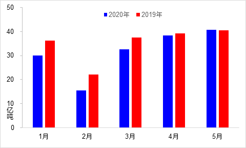 1-5月,36個中心城市公共交通完成客運量131.1億人,同比下降51.5%。分方式看,公共汽電車、軌道交通、巡游出租車和輪渡客運量分別下降54.0%、48.2%、50.5%和59.4%。