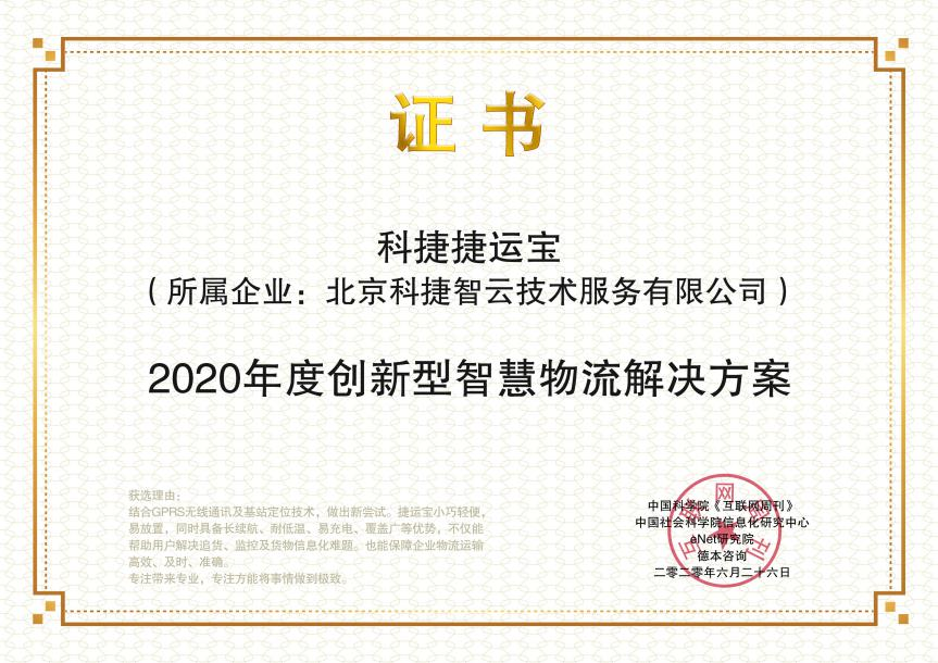 基站定位,不丟信號,一單到底,精準追蹤,超長續航,耐冷耐熱,電子圍欄,輕松結算,數據分析,系統預警,正是通過這一系列線上線下的“散打組合”,科捷捷運寶不僅是為企業、甚至是為整個行業提供了一整套強大的創新型智慧物流解決方案,2020創新型國家發展論壇的最高榮譽金i獎當之無愧。