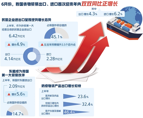 6月份進(jìn)出口年內(nèi)首次雙雙實(shí)現(xiàn)正增長(zhǎng),外貿(mào)整體實(shí)現(xiàn)企穩(wěn)回升——