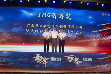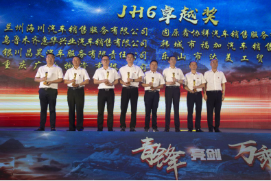 慶典期間,解放品牌為表現(xiàn)優(yōu)秀的經(jīng)銷商分別頒發(fā)了JH6優(yōu)秀服務(wù)商、JH6卓越獎、JH6領(lǐng)航獎、JH6智尊獎四個獎項(xiàng),鼓勵西部區(qū)域10000輛目標(biāo)達(dá)成過程中表現(xiàn)優(yōu)異的團(tuán)隊(duì)。隨后,一汽解放集團(tuán)股份有限公司副總經(jīng)理 青島整車事業(yè)部總經(jīng)理 王瑞健將“優(yōu)秀沖鋒團(tuán)獎”授予青島萬輛沖鋒團(tuán),表彰該團(tuán)隊(duì)無懼挑戰(zhàn),努力提升市場份額,達(dá)成萬輛銷量的佳績。