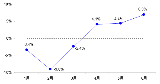 上半年,完成全社會貨運量198.7億噸,同比下降7.8%,二季度以來快速恢復,5月、6月連續正增長,增速分別為0.4%和3.9%。分方式看,公路貨運量下降9.0%、水路貨運量下降8.0%。