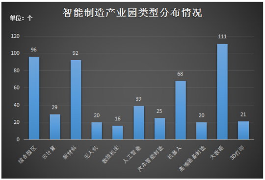 在智能制造的產(chǎn)業(yè)鏈上,云計(jì)算、大數(shù)據(jù)和人工智能技術(shù)的發(fā)展成為智能制造業(yè)發(fā)展的底層驅(qū)動力,是智能制造系統(tǒng)具備“數(shù)據(jù)采集、數(shù)據(jù)處理、數(shù)據(jù)分析”能力的基礎(chǔ)設(shè)施。近年來,大數(shù)據(jù)產(chǎn)業(yè)園也是數(shù)量最多的產(chǎn)業(yè)園類別,達(dá)到111個(gè)。其次是綜合園區(qū),達(dá)到96個(gè)。新材料園區(qū)為智能制造產(chǎn)業(yè)發(fā)展提供了“物質(zhì)引擎”,應(yīng)用非常廣泛,產(chǎn)業(yè)園區(qū)達(dá)到92個(gè)。