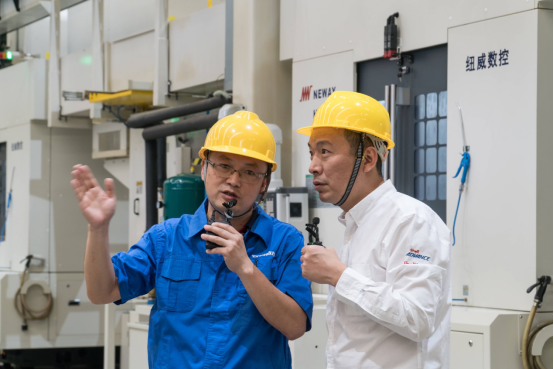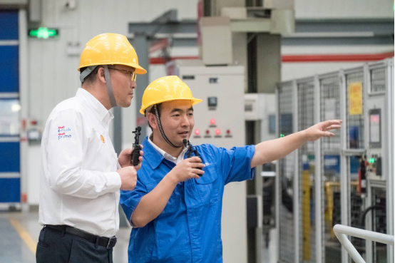 云內動力裝配車間副主任曹澤宇(左)殼牌潤滑油技術顧問朱小川(右)