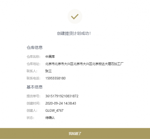 確認(rèn)收貨:買(mǎi)家到指定庫(kù)房提貨,賣家出庫(kù),買(mǎi)家確認(rèn)收貨,交易完成。