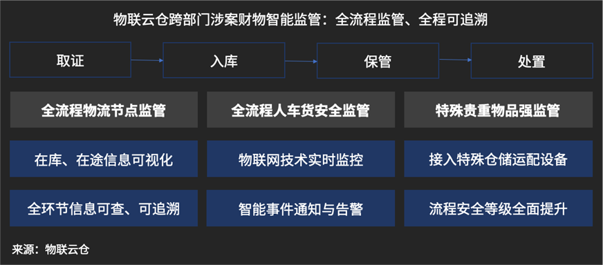 從跨部門涉案財物管理的全國進展來看,經各地區的實踐探索,現階段涉案財物管理工作對專業物流管理系統的需求、特別是監管系統的需求逐漸凸顯。以物聯云倉與某市的涉案財物管理合作案例來看,部分地區已經開始了涉案財物集中管理更為深度的社會化運作步調。在政法部門與專業物流企業越來越深的合作推進下,我國跨部門涉案財物的管理工作效率將能持續提升,在不斷節省政務開支的同時,帶來更高的辦案效率,讓司法執法工作更加地陽光透明。