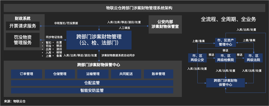 從國際經驗來看,引入社會力量進行托管等多元方式對涉案財物進行分門別類地統一管理,有利于涉案財物的科學保管,也節省了有限的政法資源。以物聯云倉服務的某市跨部門涉案財物管理的案例來看,物聯云倉為其打造的跨部門涉案財物管理整體解決方案,幫助該市實現對涉案財物的集中管理、統一處置,實現對涉案財物實時動態全流程智能監管,助力該市高效、陽光司法執法。