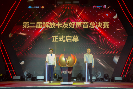 活動伊始,一段精彩的視頻,引領現場嘉賓與選手共同見證了解放鷹雄匯的創立及發展歷程,回顧了首屆賽事的珍貴記憶,以及本屆賽事線上選拔的精彩瞬間。隨后,在現場所有觀眾、嘉賓、選手的注視與期待下,一汽解放汽車銷售有限公司西部營銷部副部長 肖勁松 、 樂行無憂卡車司機之家董事長 蘇明先生登臺啟動開幕蓮花,開啟活動的序章,宣告本次解放卡友好聲音總決賽的正式開啟。