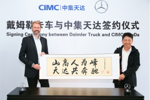 左:戴姆勒卡客車(中國)有限公司首席執(zhí)行官科銳銘(Ralf Kraemer)右:中集天達(dá)集團(tuán)總裁及執(zhí)行董事鄭祖華