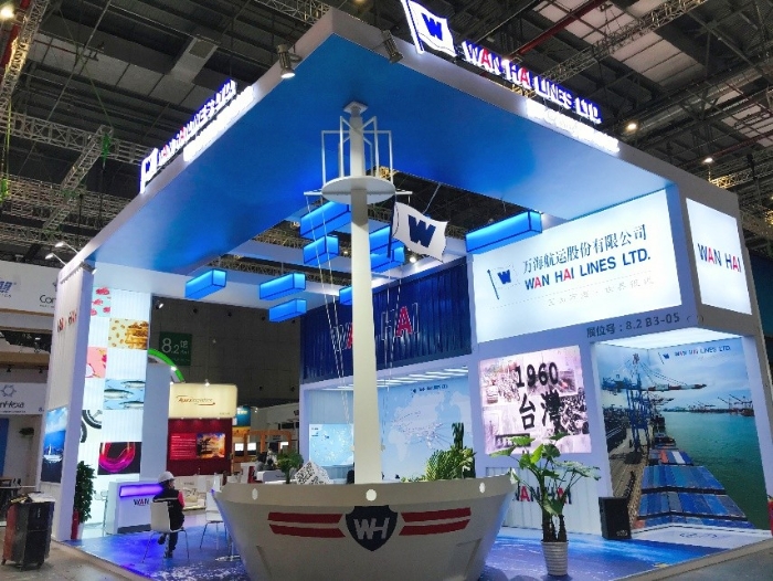 萬(wàn)海航運(yùn)展臺(tái),依舊延續(xù)了往屆的船頭造型,十分別致