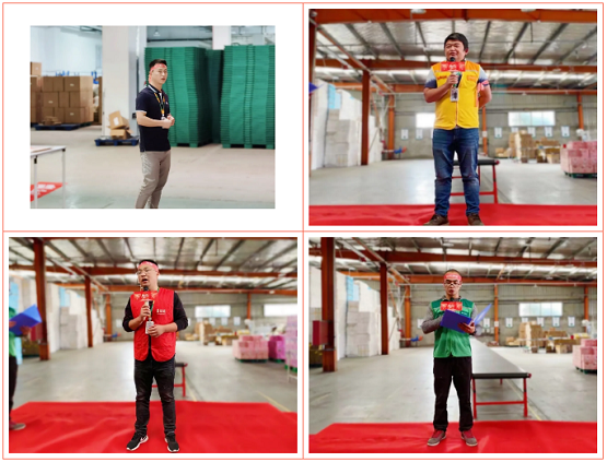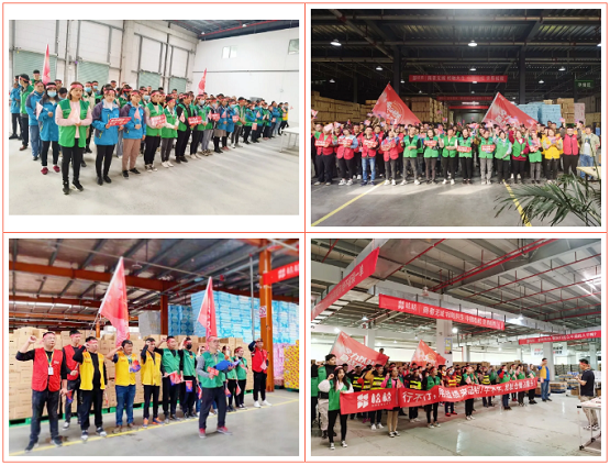 松松華東區域·江蘇淮安倉、浙江杭州倉、華中區域·河南漯河倉、河南鄭州倉、西南區域·四川成都倉、西北區域·陜西西安倉、華南區域·廣東廣州倉、新疆區域五大前置倉等分倉經理分別在宣誓大會上做了戰前動員。