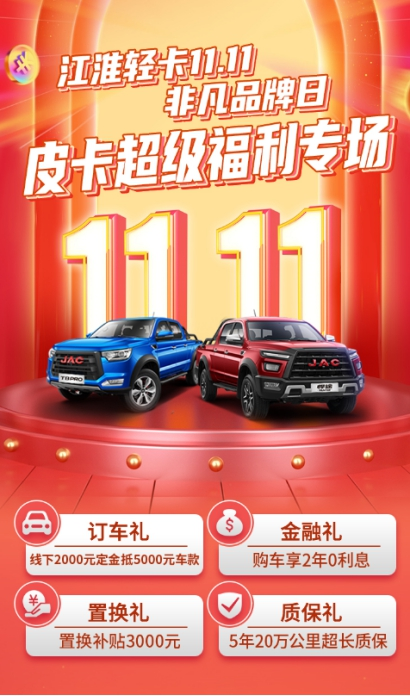 清空購物車!清空購物車!清空購物車!重要的事情說三遍!雙11請速速領取江淮皮卡專場購車福利!