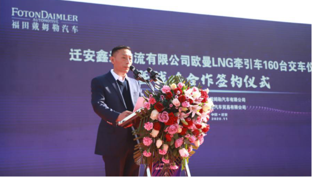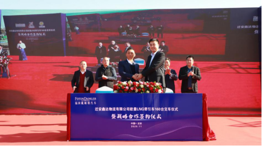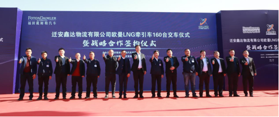 2020年11月13日,福田戴姆勒汽車與遷安鑫達(dá)物流有限公司成功舉辦“歐曼LNG牽引車160臺(tái)交車暨戰(zhàn)略合作簽約”儀式。本次交付的全新一代國六大馬力歐曼LNG重卡,以氣耗更省、自重更輕、安全更優(yōu)、品質(zhì)更可靠、駕駛更舒適、服務(wù)更無憂的產(chǎn)品優(yōu)勢(shì),滿足用戶對(duì)高品質(zhì)LNG重卡的需求,以整車全生命周期更優(yōu)TCO助力客戶降本增效。