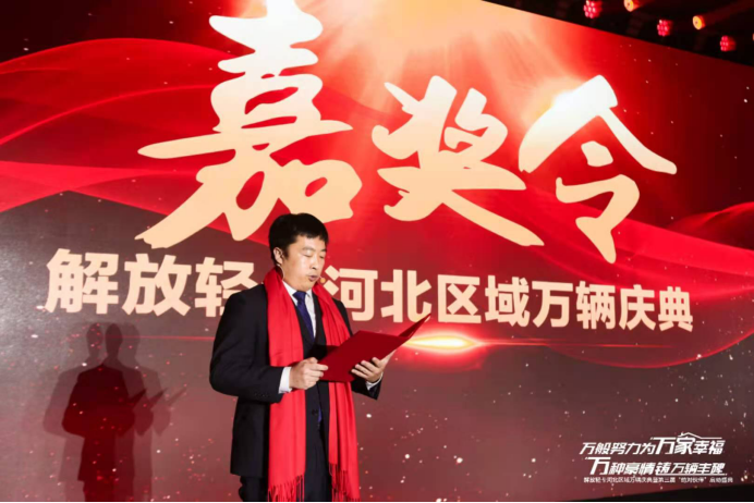 11月17日,解放輕卡為表彰河北區(qū)域年銷量突破1萬輛,特地在石家莊召開了以“萬般努力為萬家幸福,萬種豪情鑄萬輛豐碑”為主題的解放輕卡河北區(qū)域萬輛慶典暨第三屆“絕對伙伴”啟動盛典。