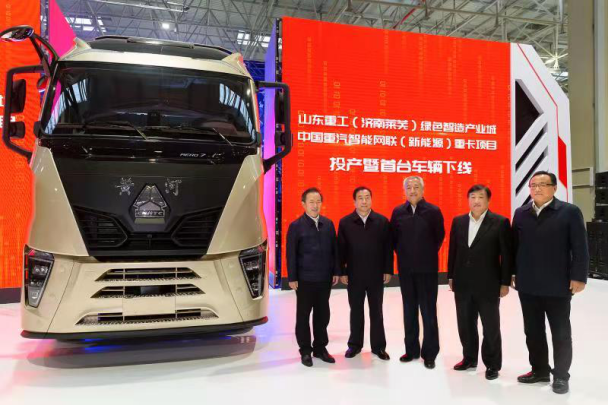 2020年11月19日上午9時,山東重工(濟南萊蕪)綠色智造產業城—中國重汽智能網聯(新能源)重卡項目投產暨首臺車輛下線儀式在該項目總裝車間隆重舉行。隨著屏幕緩緩開啟,一輛剛剛組裝下線的新一代黃河重卡緩緩駛到舞臺中央,標志著中國重汽智能網聯(新能源)重卡項目正式投產。