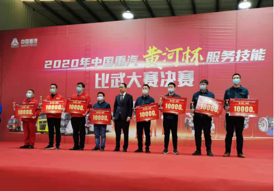 2020年11月28日,中國重汽“黃河杯”服務技能比武大賽總決賽在濟南培訓基地落下帷幕。本次大賽歷時3個月,共有來自全國各地服務站的1千多位技術精英參加了比賽。歷經初選、預賽、決賽三輪激烈角逐,邢臺萬眾服務站的宋雪建、湖南中蒼服務站的龔高華、南陽唐龍的方乾等8位選手脫穎而出,奪得決賽一等獎,獲得每人1萬元的現金獎勵,其余選手分別獲二、三等獎及榮譽獎獎勵。