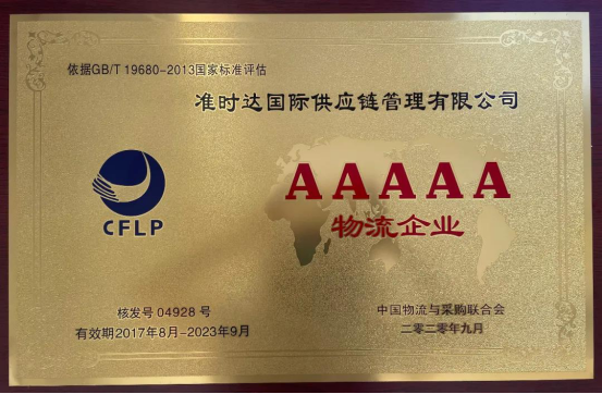 11月27日,中國物流與采購聯合會工作人員為準時達帶來了沉甸甸的5A物流企業獎牌和證書,這對于準時達來說意義重大。
